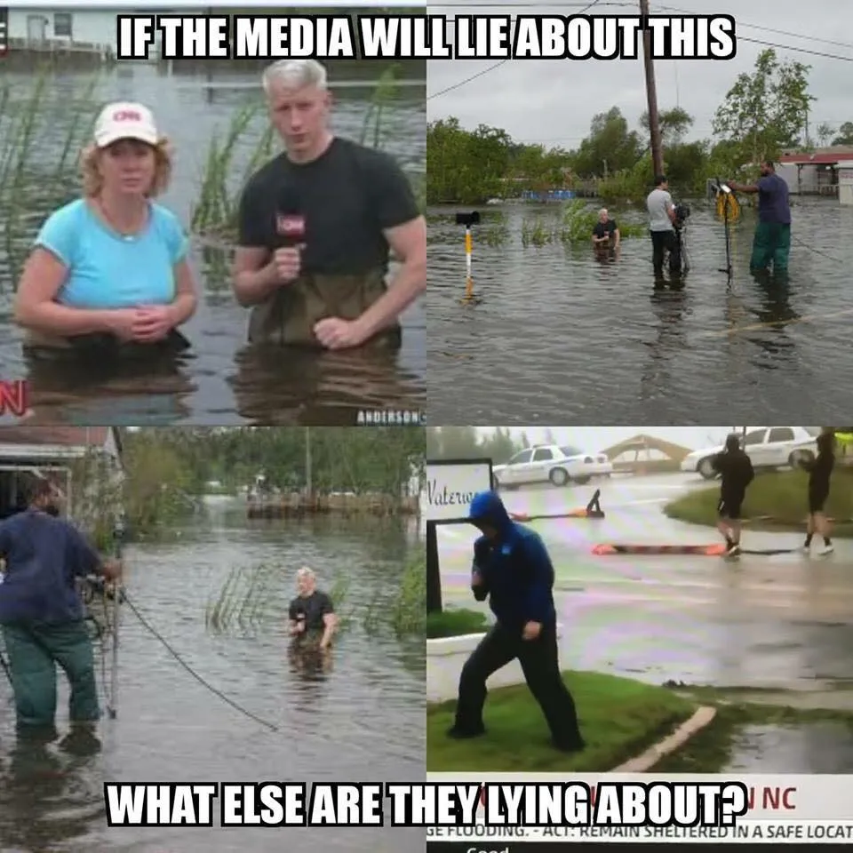 Yeah there has been a lot of deceit in a way with weather reporting. But this one (in the OP) is legit. The reporter thought he went off the air and did not know that the camera man started recording him helping that girl. If she could not swim. She was in pretty deep if there was any current.I think it's human nature to help others in distress, kudos to the weatherman. On reporting: