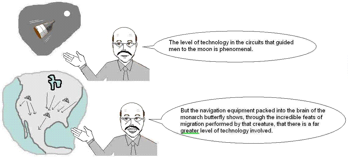 Designing navigation equipment to take men beyond the confines of this planet and safely back again took an enormous amount of intelligent effort. The fact that the monarch can do these unbelievable feats with such an amazingly miniaturized control centre reveals a level of design engineering which demands an overwhelmingly great intelligence.