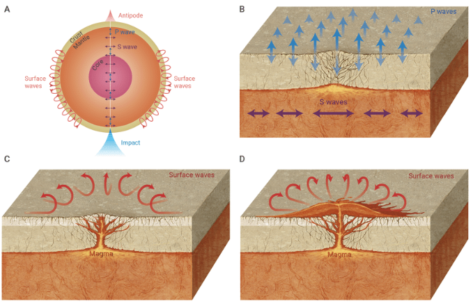 Seismic events can also be triggered by impact events, the most well known is the Chicxulub crater caused by an asteroid impact which led to the Cretaceous mass extinction 66 million years ago.