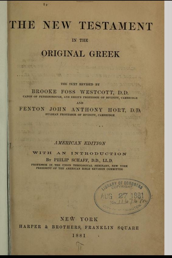 8. Wescott and Hort's personal letters were published after their death, and reveal they conspired against the Textus Receptus translation from Traditional Greek texts that Erasmus made in 1516-1535. The Textus Receptus was the first Greek NT translation published. It is what Martin Luther and Tyndale used for their Bible versions, and also one of the main sources the English translators used for their 1611 King James Version Bible.
