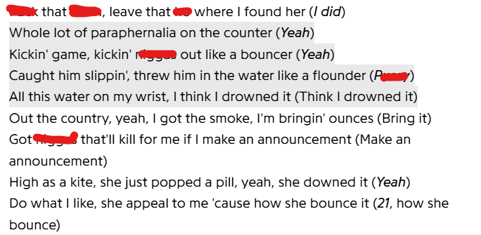This would be the stereotype they’re leaning into in an attempt to appease their older, white, middle class clientele were they actually banning it, officially or otherwise… The idea that rap is all about drugs, violence, sex, and misogyny.