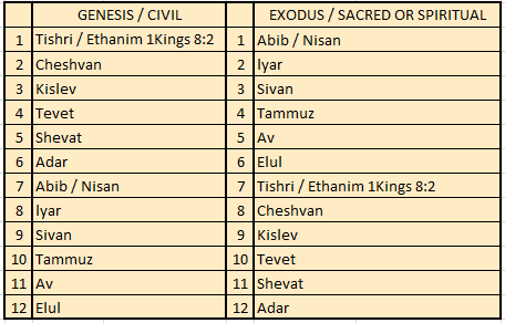 Ex 12:1 The Lord said to Moses and Aaron in the land of Egypt, “This (Abib/Nisan) month shall be the beginning of months to you; it is to be the first month of the year to you.