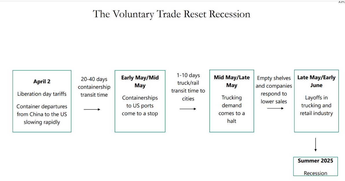 There will also be some sort of lag. Chinese products at the port of Long Beach or Los Angeles then have to get by truck or rail to Topeka, and then by smaller trucks to individual brick and mortar stores. Some of that stuff is still on the road, but the flow got switched off at the port. And now the ships aren't even leaving China, or are leaving with less. If and when it gets switched back on, the flow won't be felt until the next ship to leave Shanghai gets its contents to Topeka.