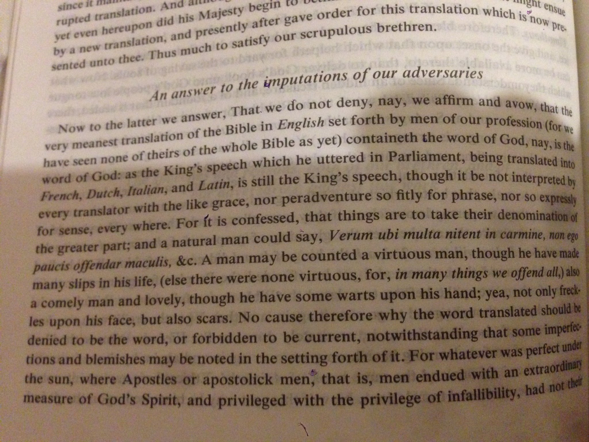 I don't think I have to be "for or against" the KJV. It's not an either or, as I don't start with the belief that only the KJV is God's word in English. I read the preface to the KJV this afternoon and I think the KJV translators would agree with me on this - they explicitly said that ALL translations - even the meanest - is the Word of God (see attached). They did not claim only the KJV was the word of God. So they certainly were not KJV only. (Obviously I think that if they were here today they'd modify that to account for things like the New World Translation.)