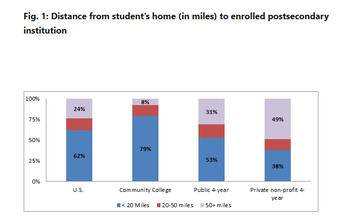 A 2012 analysis found about 57% of undergraduates attended an institution within 50 miles of their permanent home address.