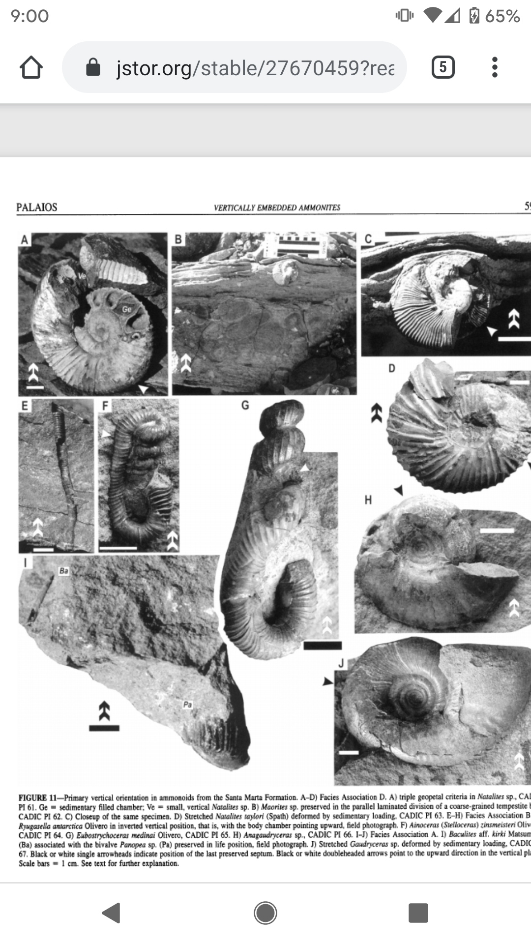 sir the paper is about ammonoides. So let me repeat: And your specimen in the peer review looks like a snail. So saying a snail shell is standing up is sort of relative. But a long nautiloid shell is like four times the width of the body, it would take much much more pressure to stand a nautiloid shell up, than it would to stand a ammonoide shell up logically speaking, just from an observation. So therefore, this work is non sequitur to discussion. They are two completely different animals, and when you look at a picture you can see this.