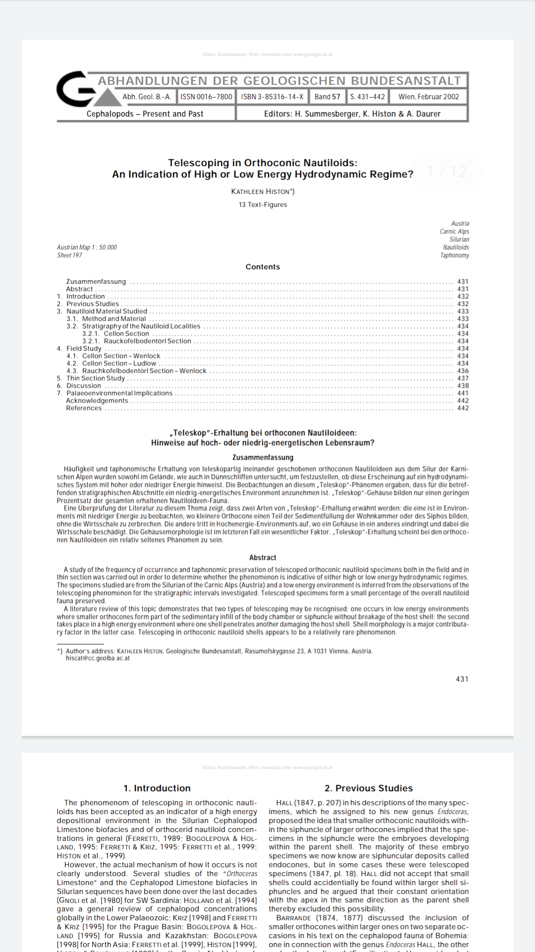 Turek, Vojtch, a PhD and expert on fluid dynamics of orthoconic nautiloids, peer reviewed with diagrams and images of the vertical pencil like nautiloids.