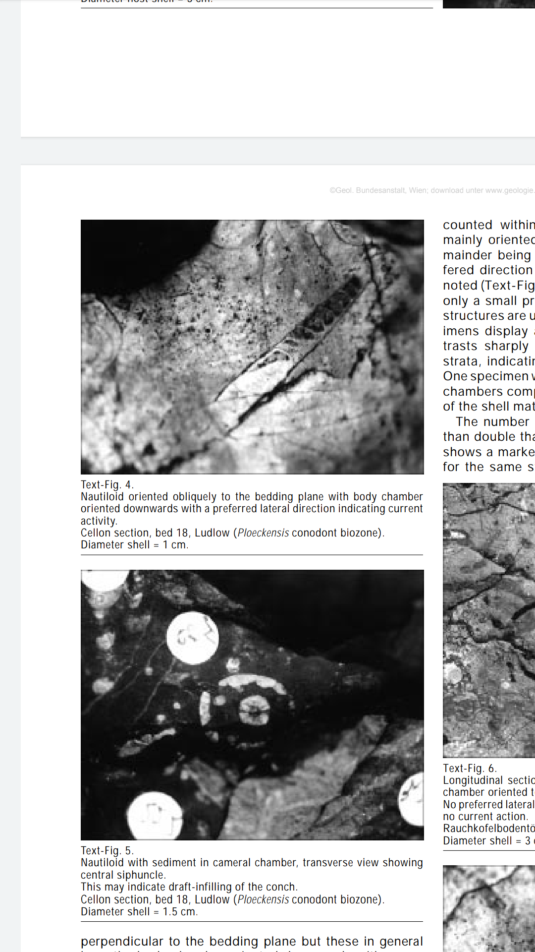 When a nautiloid is perpendicular to bedding, it's body is exposed as a circle. And so, in these papers I am providing, these people, including Steve Austin, they're going to bedding planes (where the land was historically flat) and what they see are nautiloids at many different angles. And of those nautiloids, some, around 10-15% are in oval or circle or elongated circular position with respect to their exposure on the bedding plane.