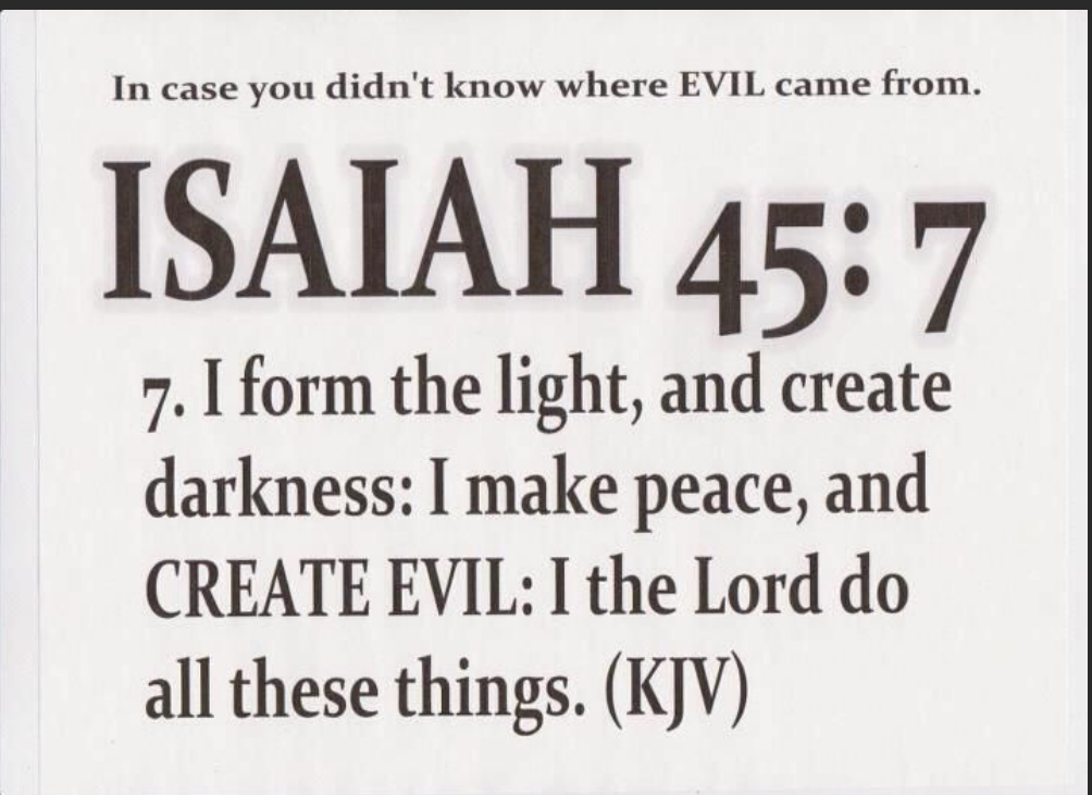 This verse meme (I form the light and create darkness, I bring prosperity and create disaster; I, the Lord, do all these things.