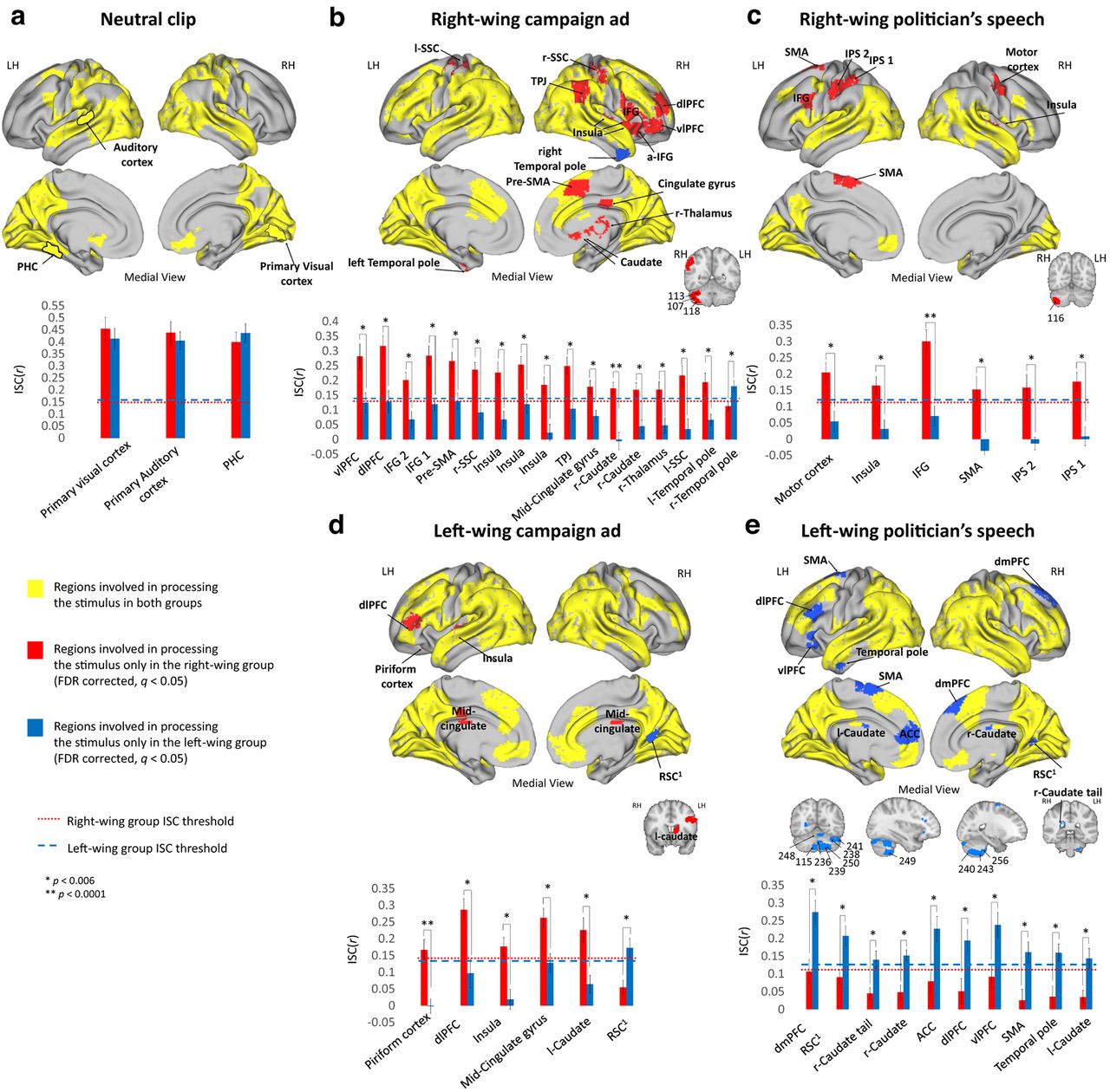 Ideological content triggered stronger and more extensive brain responses according to one’s political views both subjectively and objectively.
