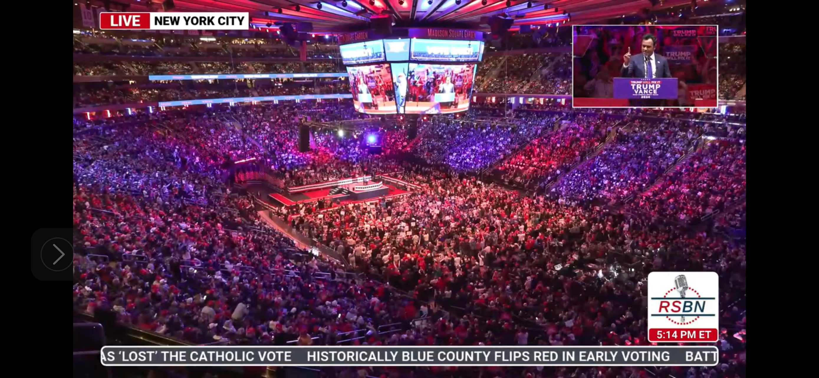 I was going to make a joke about Trump selling out MSG not being a big deal because Kill Tony sold out MSG, not realizing that the comedian to whom you were referring was the Kill Tony guy. His show is pretty funny from what I’ve seen.Hearing from the comedian at the start of the festivities, doesn't seem like he, nor anyone who'd give that guy the time of day, would be worth any of the sodium and potassium crossing my neural membranes to send a charge to my brain to consider it.