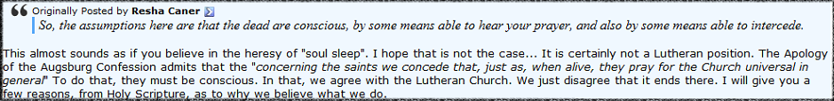 The context was immediately available.Let me offer you an alternative scenario. Rather than telling me my doctrine is a whim blown about by the wind and implying that I am swine, what if post #21 had simply said: Caner, did you misunderstand me? I was not talking about invocation of the saints, but only about whether they were conscious.
