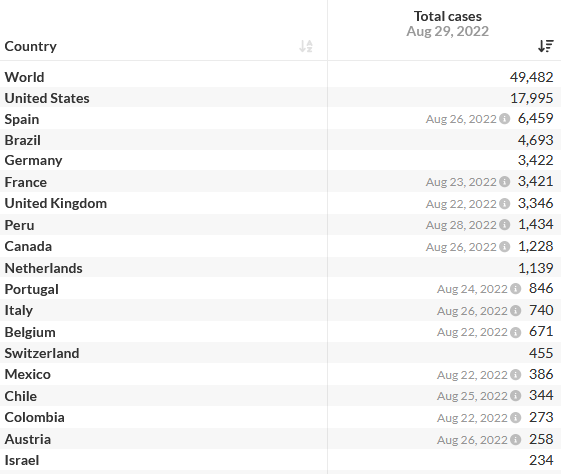 Yes, they only seem to report sporadically. Which is why we were earlier comparing the US and Spain numbers but noting that Spain only updates every so often.
