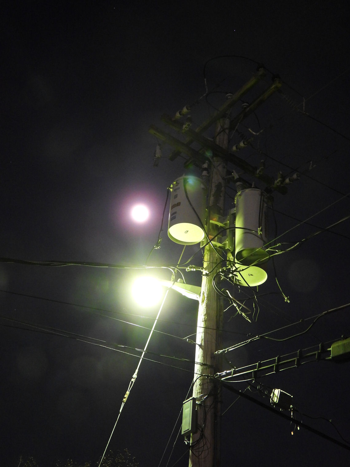 So i posted a photo of a street light and transformers reflecting the light of the street light and also the moon.