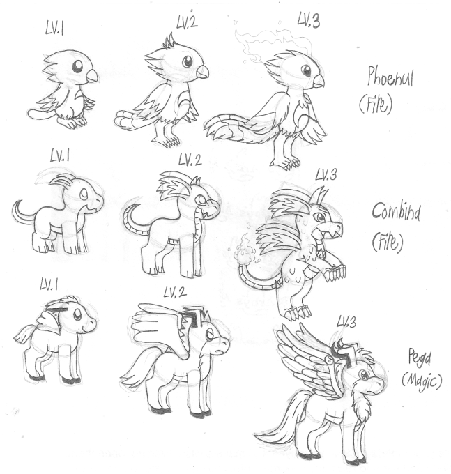 A while later, I once again became bothered by my Charaboms' lack of creativity and some other issues that made them too different from the official ones. I redesigned them again, along with other changes listed below. I moved some of LV.3's designs to LV.2, and elements from LV.4's original designs were moved to LV.3. These are their current designs and will probably not need to be changed again.
