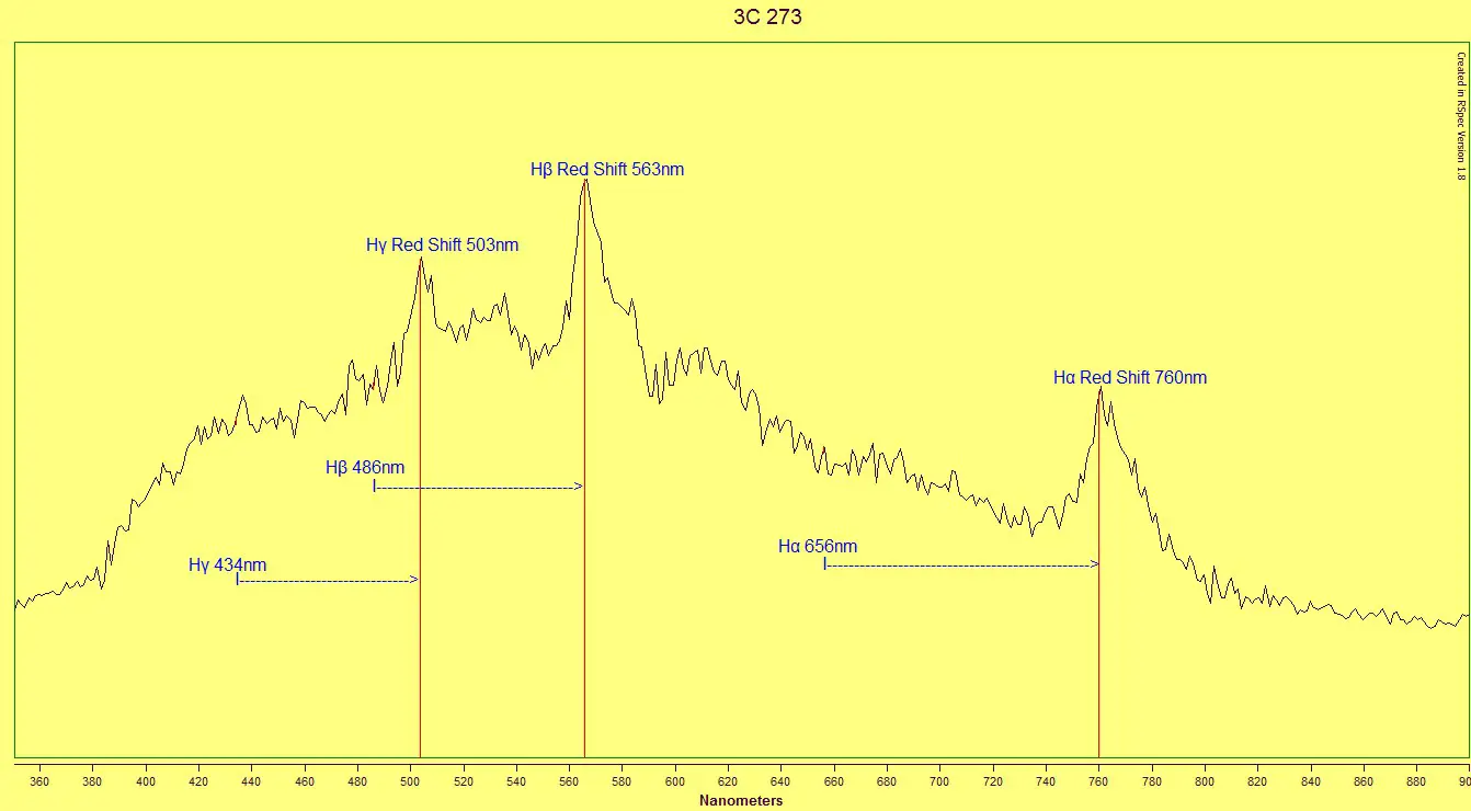 Here is an extreme example where I have used an amateur sized telescope and a diffraction grating to identify the hydrogen spectrum in a quasar around 2.5 billion years away,