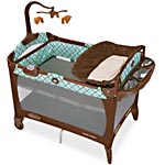 pack n' play with the bassinet insert and changing table. It also has this cool thing with annoying music and sounds-- but the greatness of a light with a timer