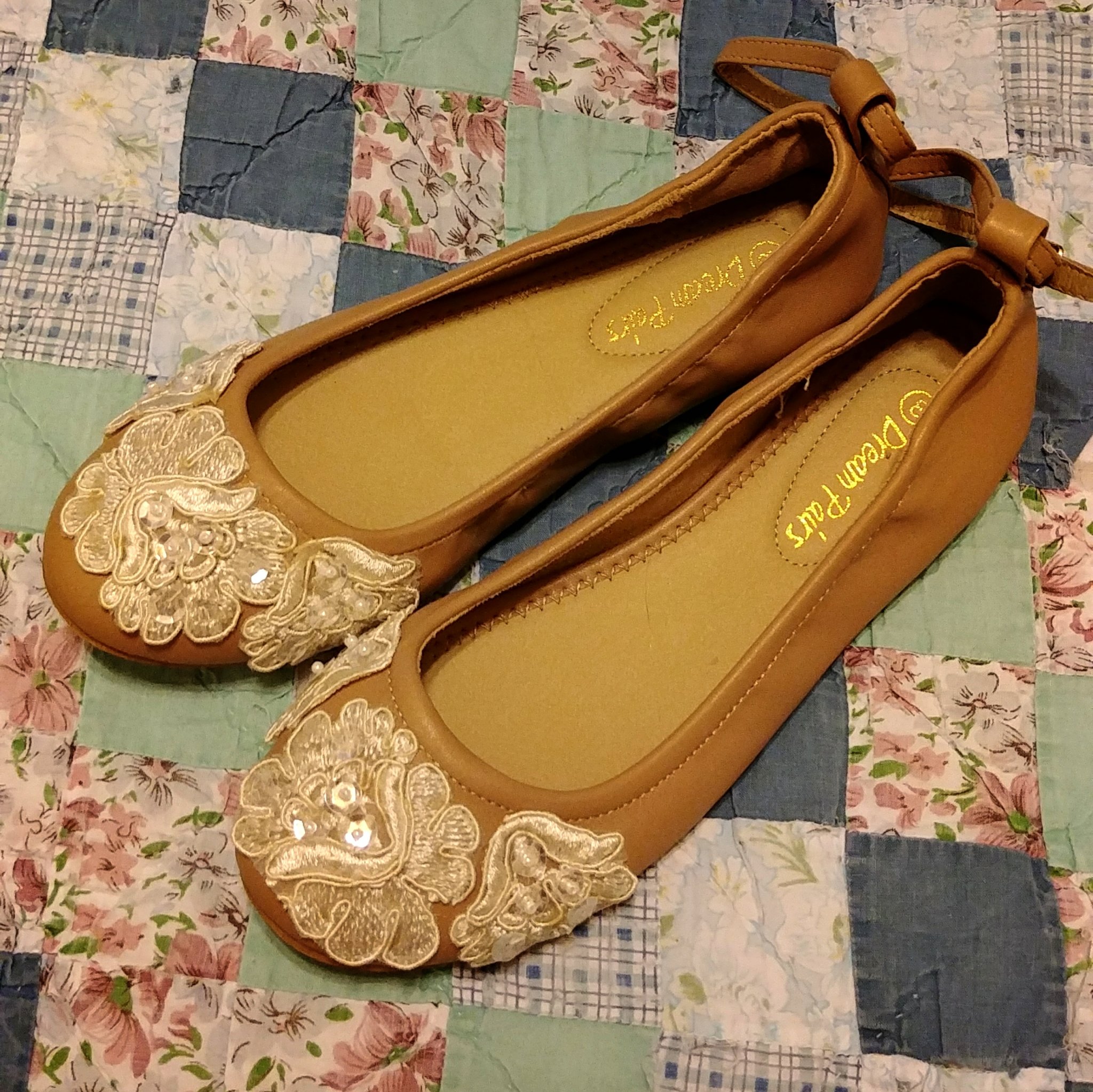 Also, made my shoes- bought some comfy nude flats and glued some appliques that look like my dress to them. I'm actually really happy with how it turned out.