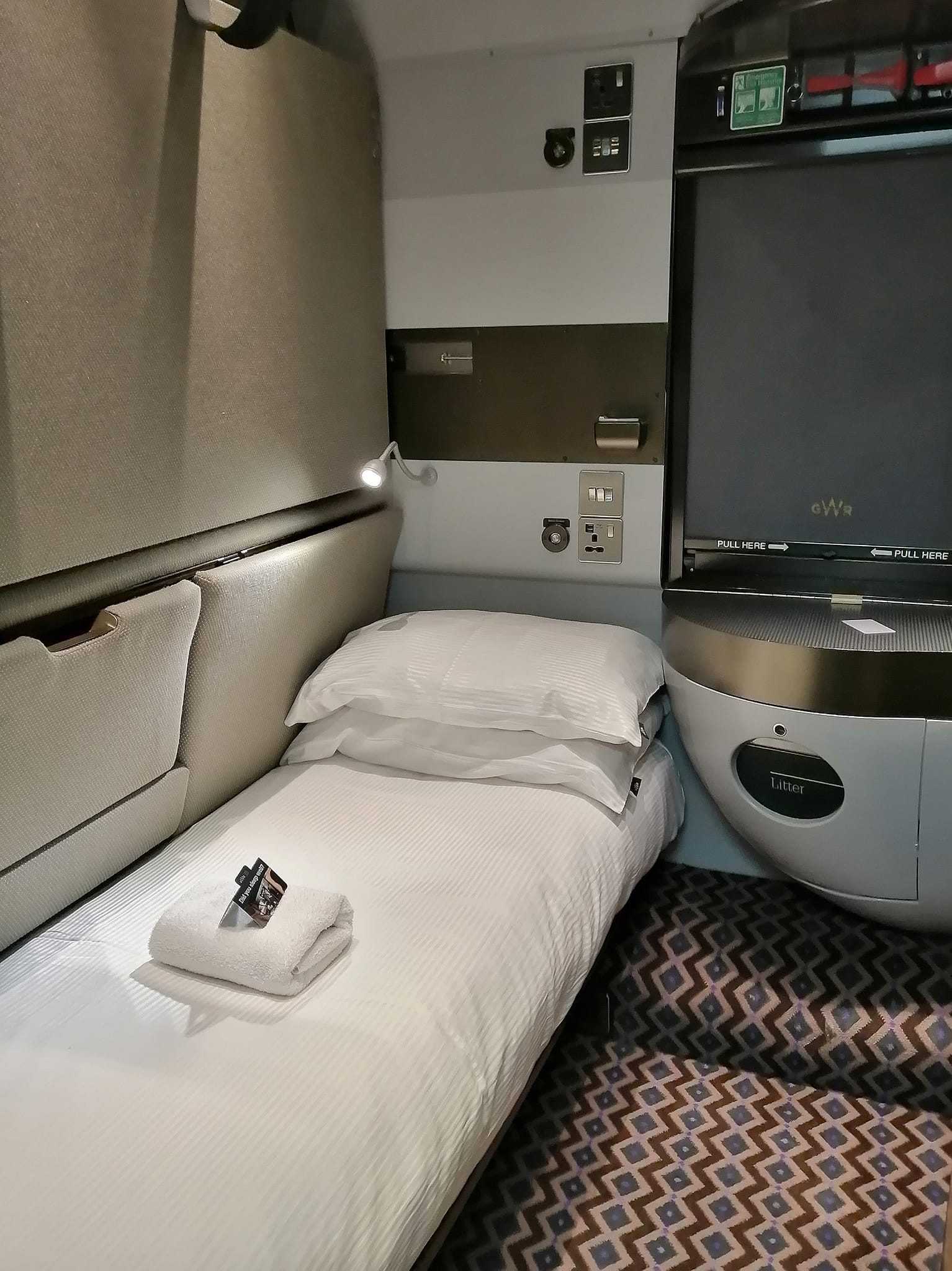 That looks really comfortable! I've never been on a night train before, only on short train trips during the day.Photo taken in September. On board the GWR "Night Riviera" between London and Penzance (Cornwall).