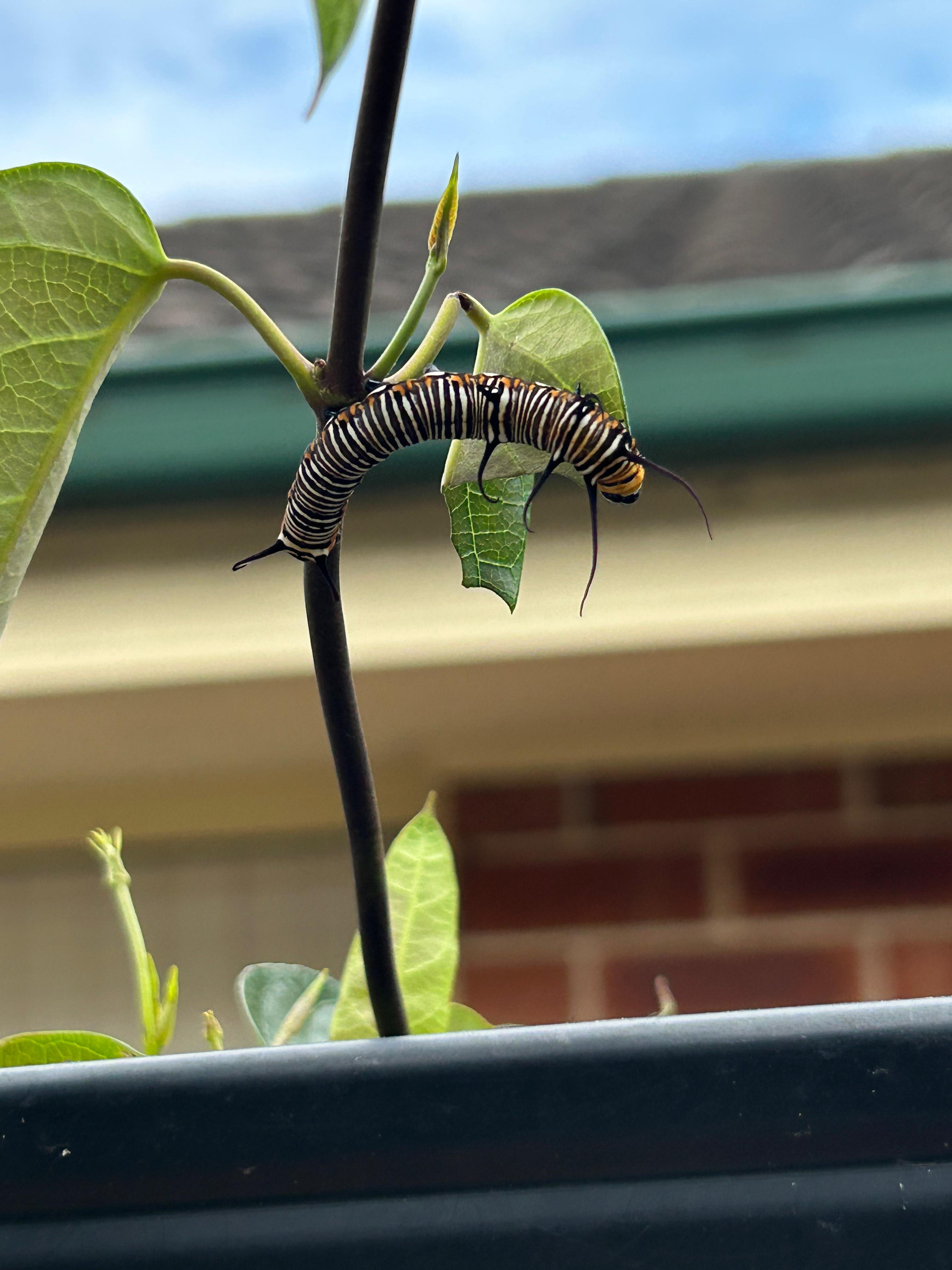 Is that a monarch? It's beautifulSee I'm nearly 99% sure this caterpillar came from an asteroid. Don't google our spiders, they will make you cry. As an arachnophobic living in Aus it makes me squeamish knowing that there's a spider somewhere living rent free in our house, like the criminal he is, and also very likely gazing down on me as I write this.
