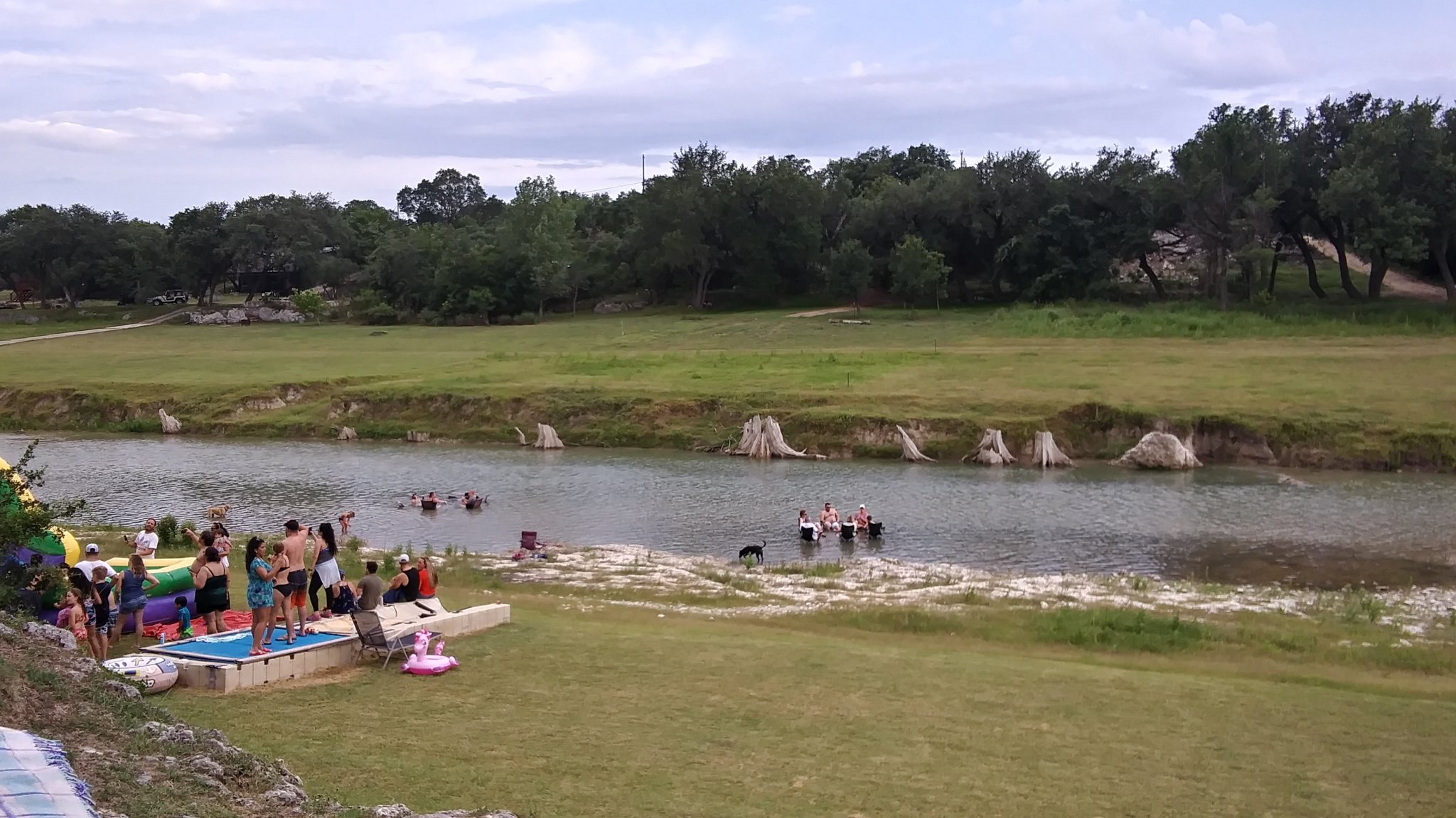 I didn't get pics of the trees or that area of the river, but this was another part of the river during a neighbor's fourth of July party. You can see trunks of cypress tress that were there once before.