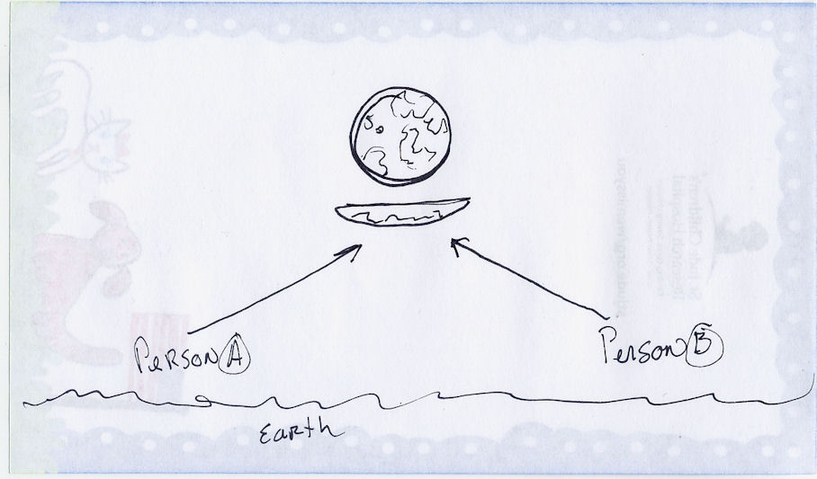 It's easily determined by you watching the moon drop below your horizon and appearing over mine. Your problem is that your view is upside down as compared to mine.