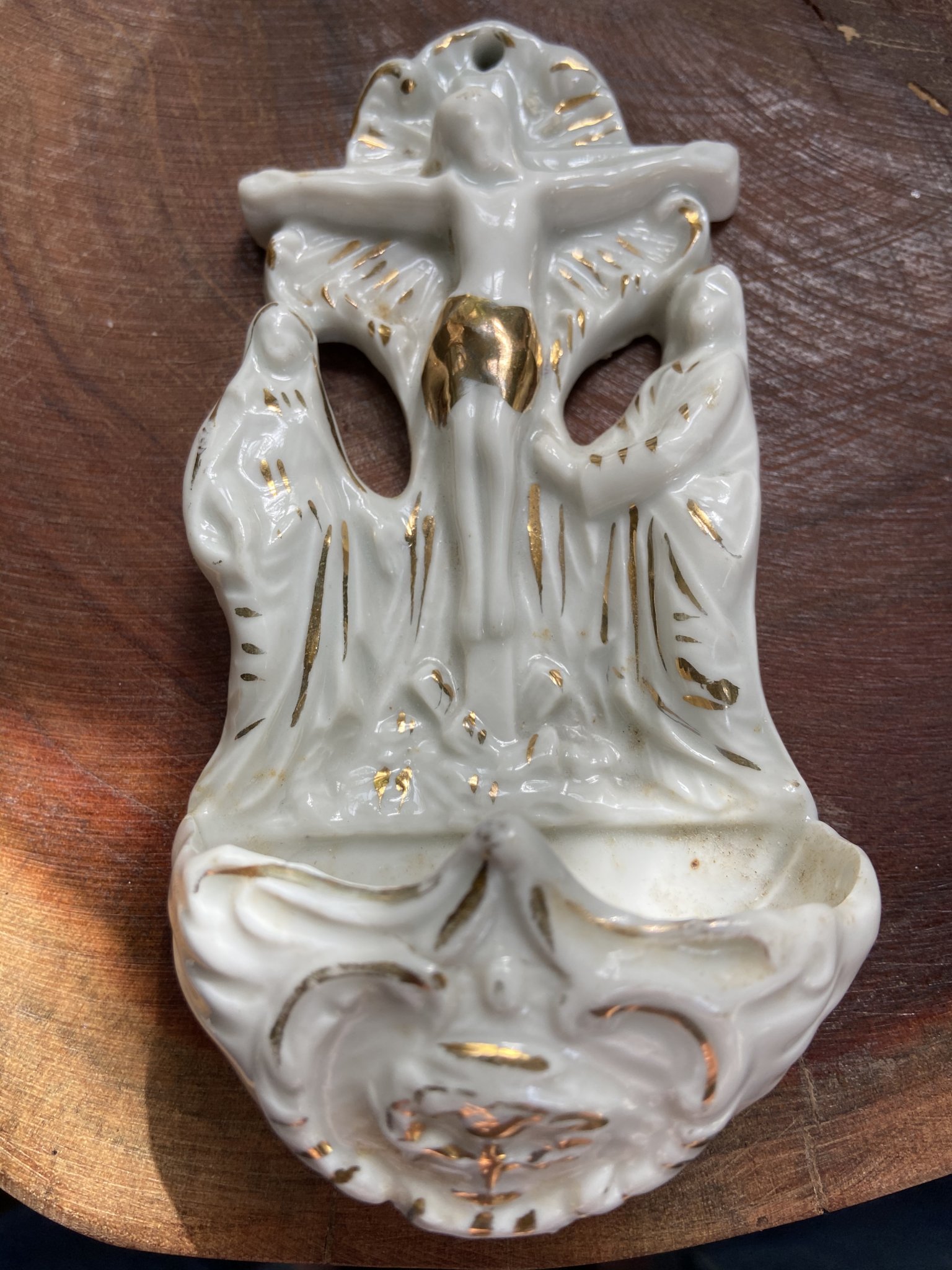 An old bisque holy water font for the home. Does anyone still have Holy Water by their doors anymore??