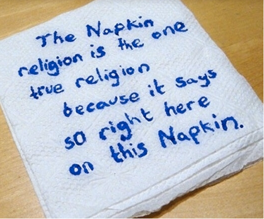 “The Napkin religion is the one true religion because it says so right here on this Napkin.”