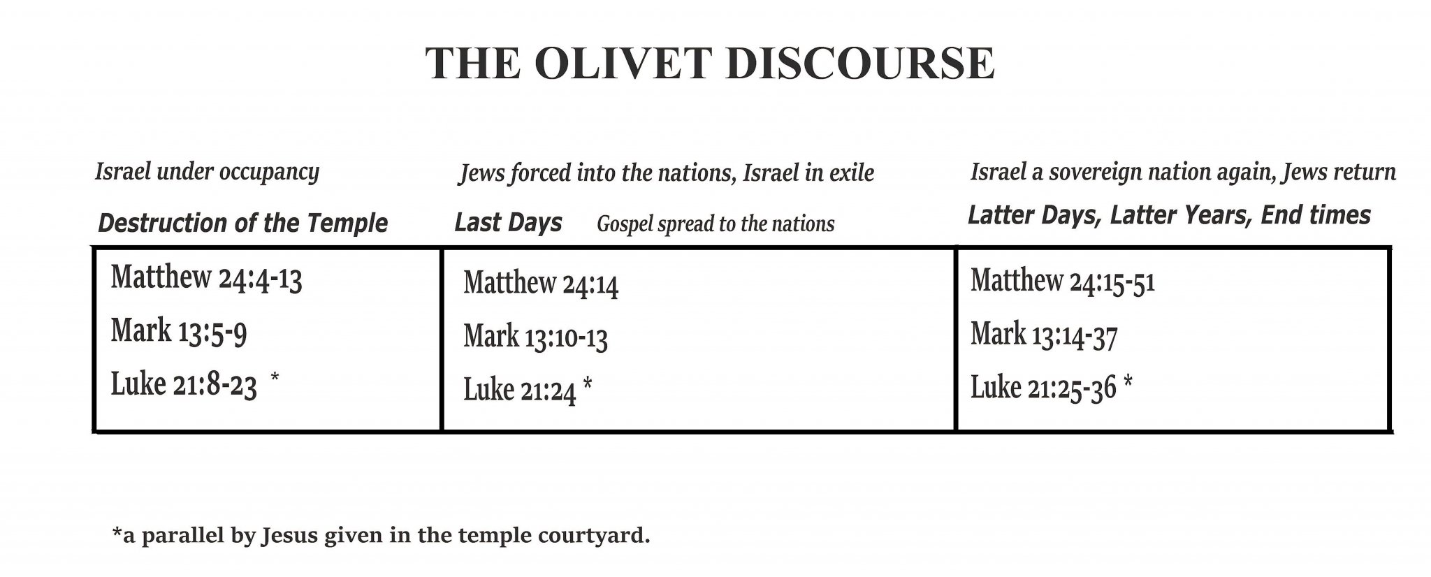 At the end of a busy day, Jesus and his disciples find a quiet place, and they simply comment on the view of the temple mount. The Lord surprises them with a very precise and shocking prophecy.