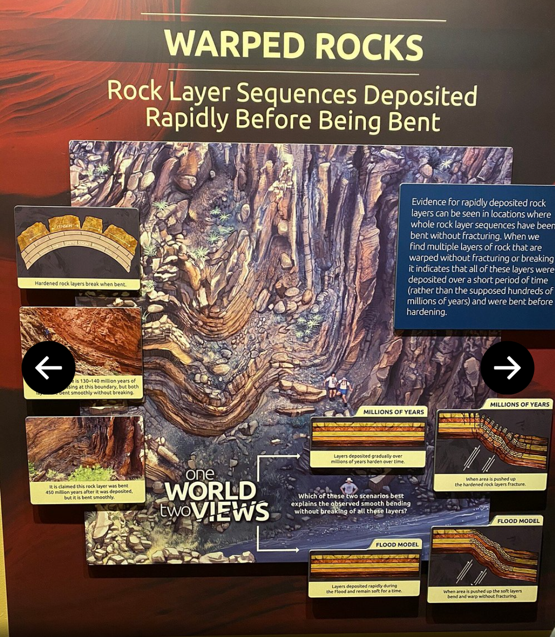 And so by this logic, if rock is not fractured and broken, but rather is wavy and ductile, then this rock therefore was not lithified and hardened, and by this logic, it was likely deposited by a global flood.