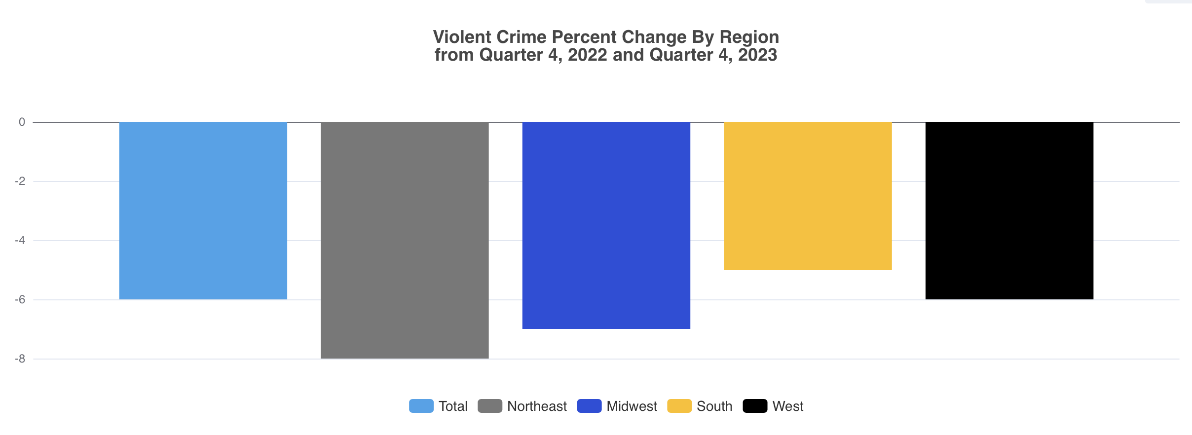 The U.S. crime rate is still dropping, FBI data shows. Q4 2023 had 13% drop in murder, 6% drop in violent crime