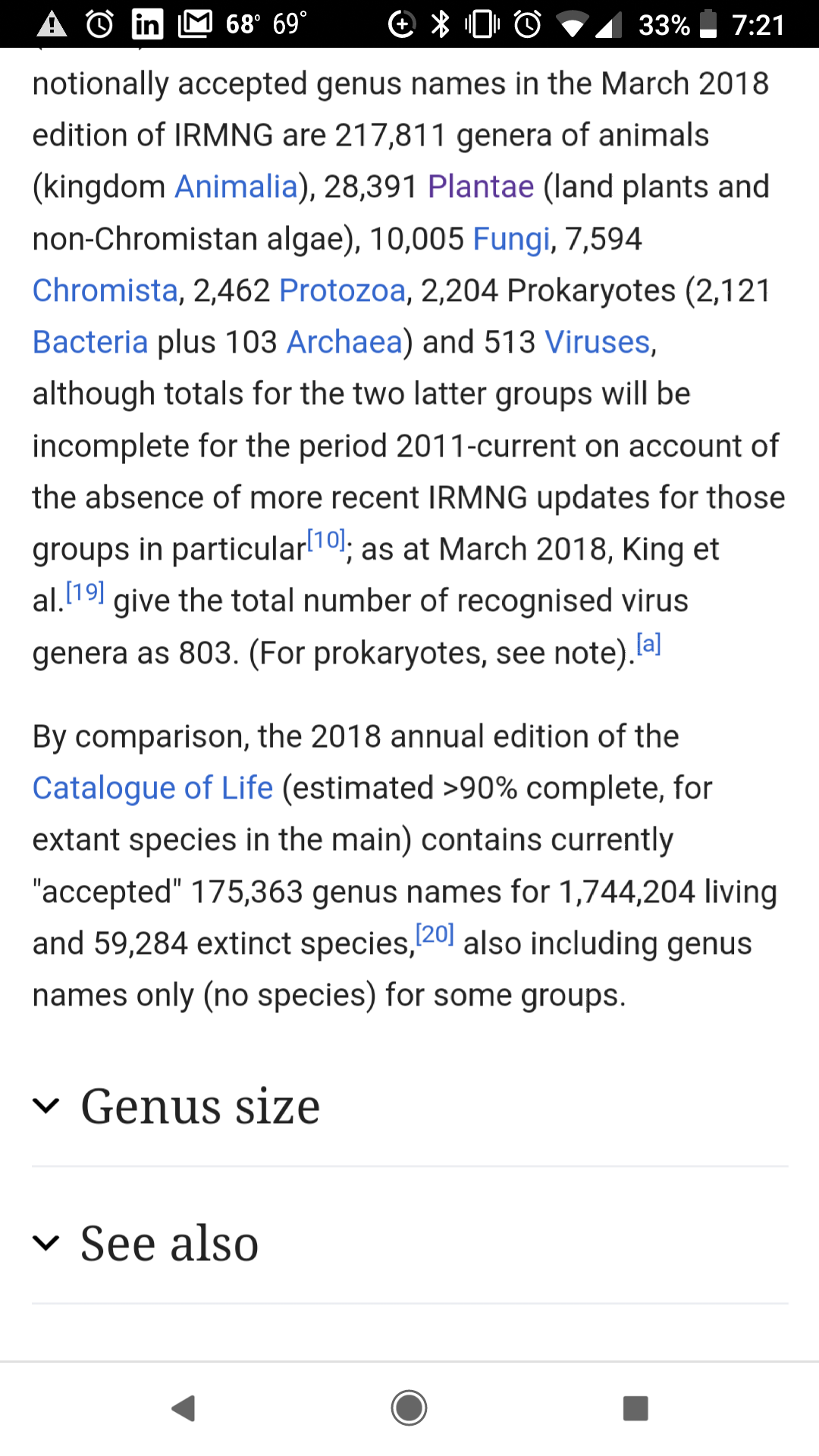 There are 200 thousand genus of animals, 30, thousand genus of plant.
