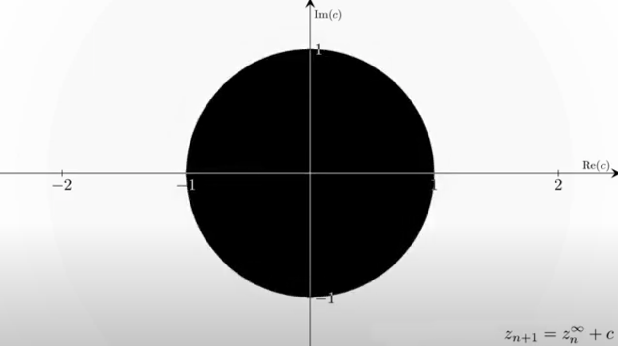 The snowflake pattern you get with z⁷ + c stems from the same formula. I am not sure what they call this maybe a hexoid. In fact it seems we can keep increasing the power to infinity and the strange thing is we end up back at a circle.