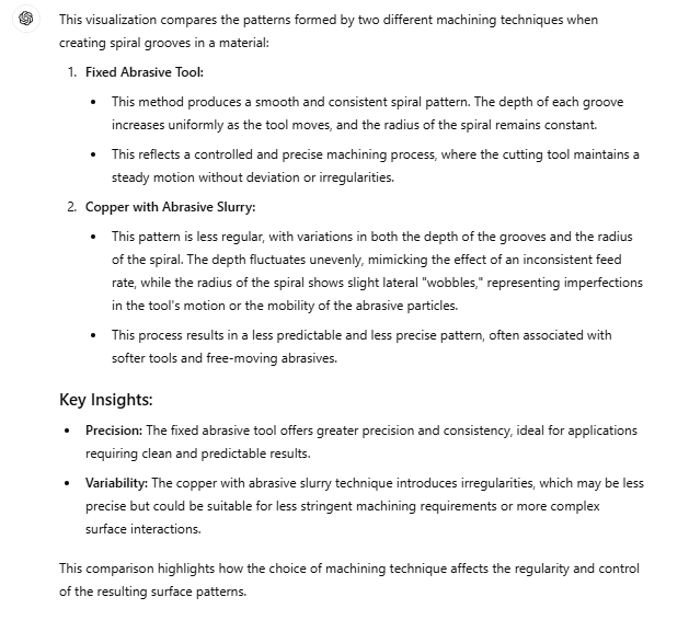Incidentally the intersection of the spiral in the copper abrasive diagram corresponding to groove convergence was confirmed by GPT-4o.