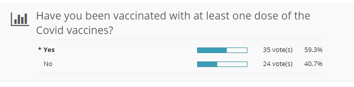 Have you been vaccinated with at least one dose of the Covid vaccines? If yes, indicate your age group, when you were vaccinated and your general experience (process, symptoms, etc.)