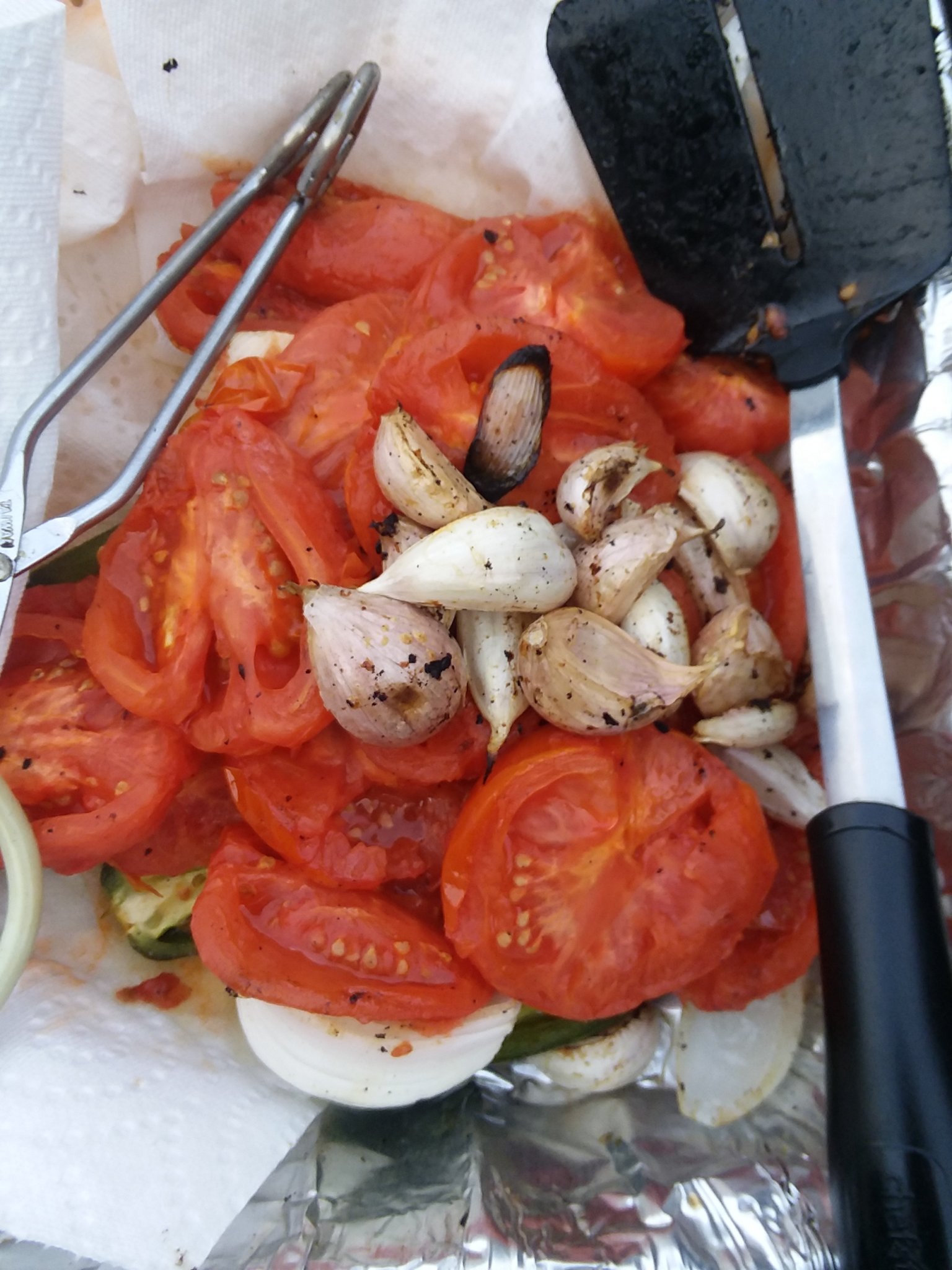I am just currently growing my tomatoes, garlic, several blueberry bushes and a blackberry vine.