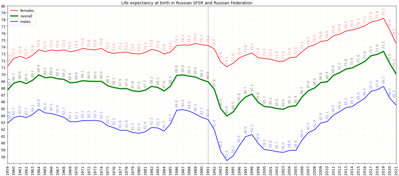 SOVIET UNION, not Russia. Russia may have called the shots and been the largest by population (~50% of the people) and by land area (~75% of the area controlled), but it was just part of a larger entity.