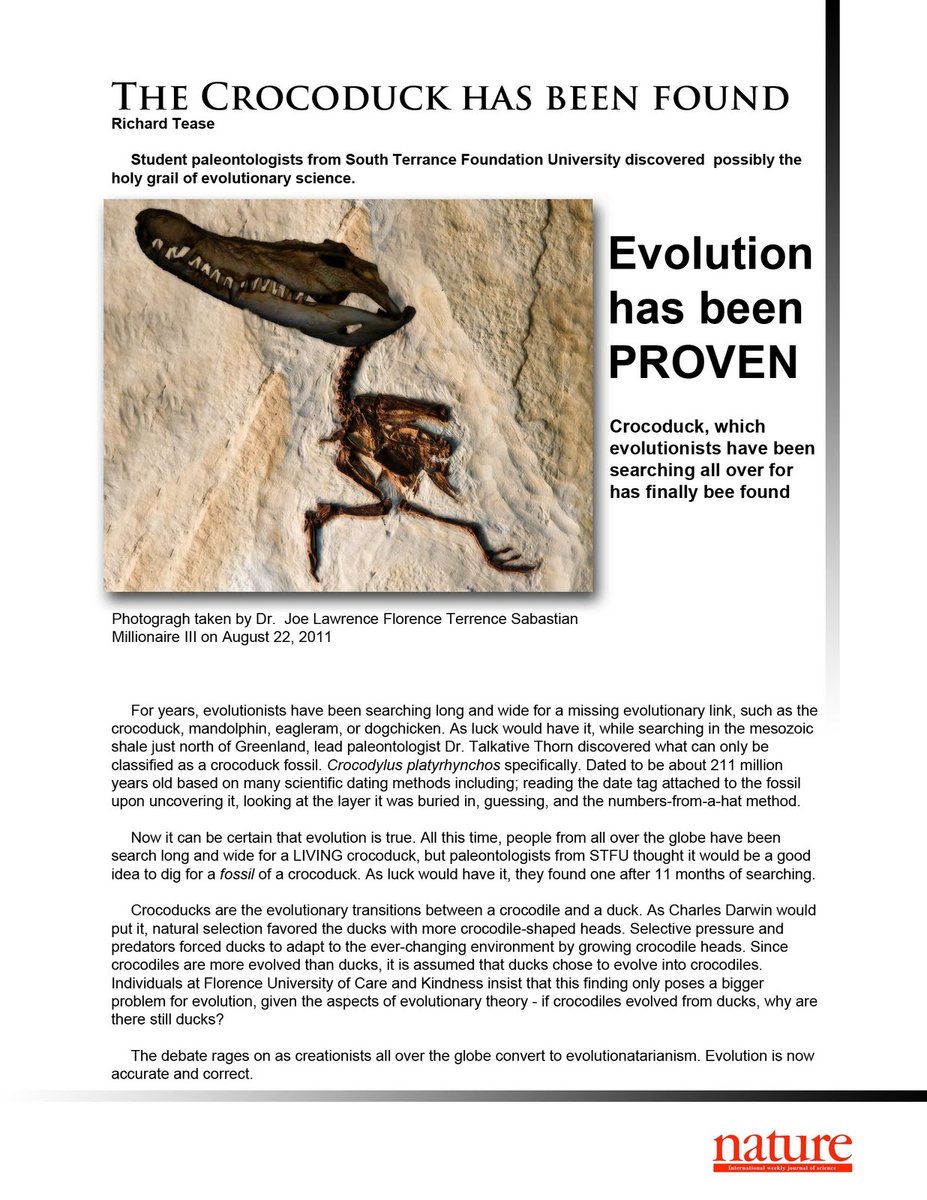 But that's all they ever come up with, it's like a Pascal's Wager of origin theories... "if we disprove evolution, then Biblical Creationism must be true by default".