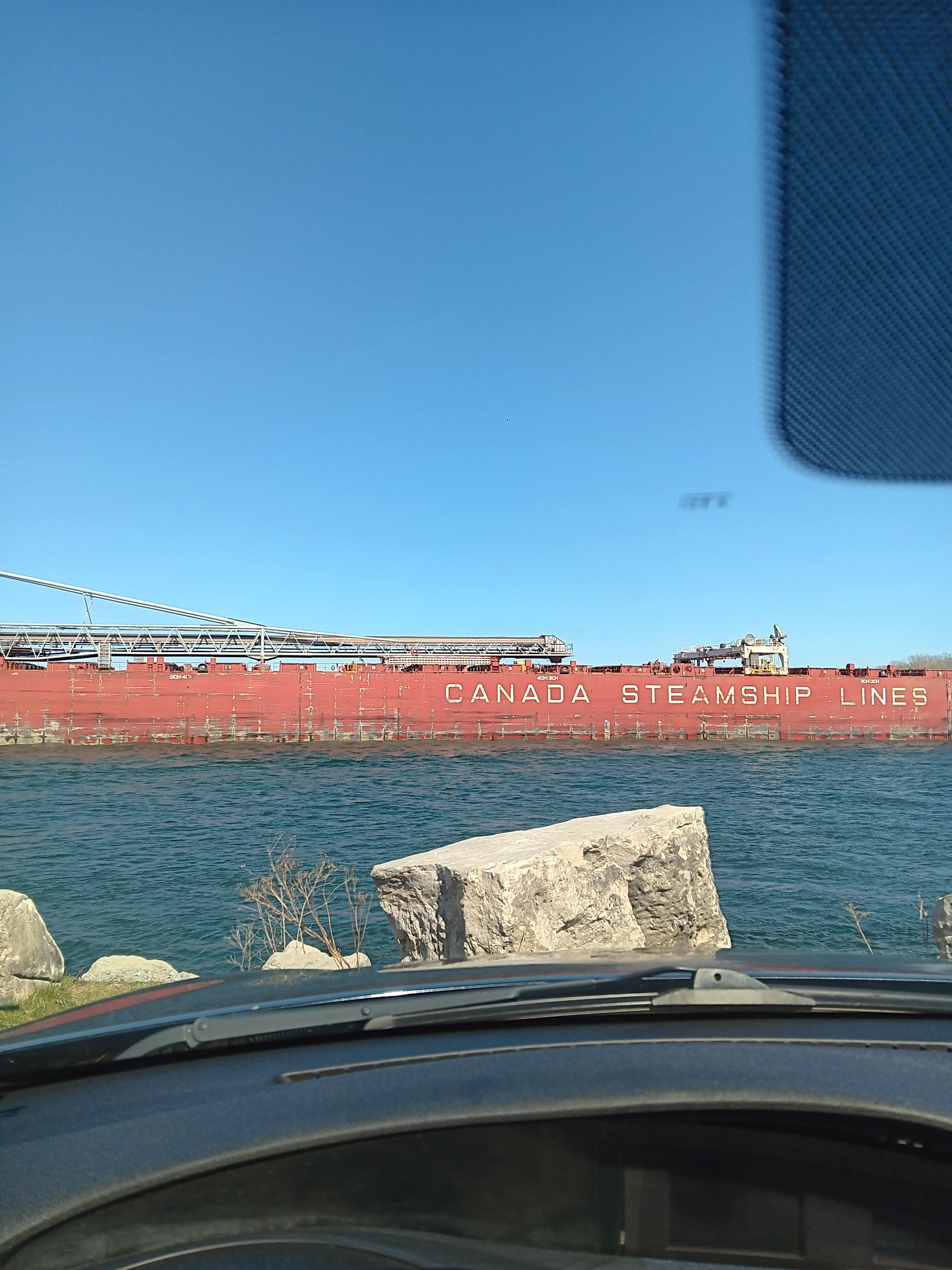 Glad you are enjoying yourself and hopefully you'll have a couple more sites to take in before you head home and process. For now, enjoy the adventure in A God sized way.Just sitting here at the park in front of the St. Marys river, enjoying the rather blissful atmosphere while reading a book I had just bought while in Eden Prairie. I am all for 50 degree weather in the spring but the wind here being so close to water makes it a bit too chilly to remain outside of the car while I read. But with the window down I can still hear the rather pleasant sounds that come with such scenery, like the gulls calling. Anyway, caught this barge as it came by.