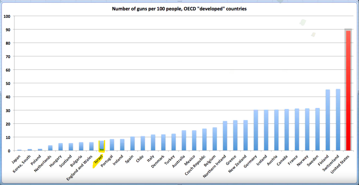 I have seen no graph showing gun ownership higher in Israel than the USA. Not one.
