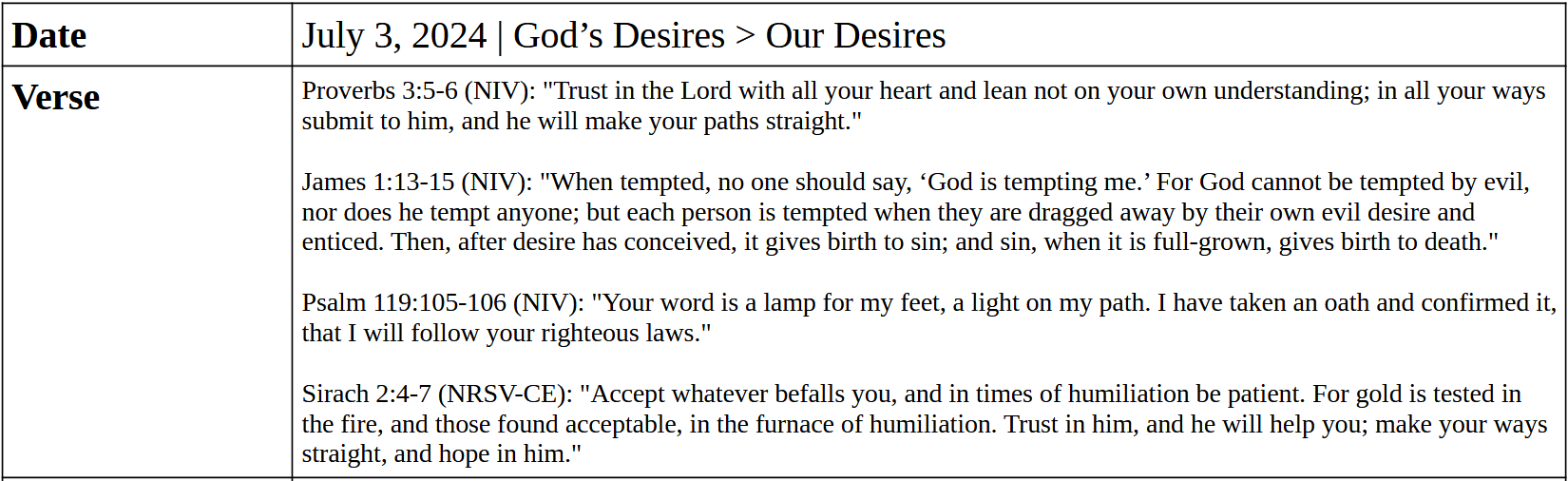 Ooh, I should add that one also. Sadly, due to space limitations in these tables, the devotionals work best with three or four passages. Already, this table is getting maxed out. :) But, Isaiah 55:8-9 could go in another, future devotional about how God has infinite knowledge.
