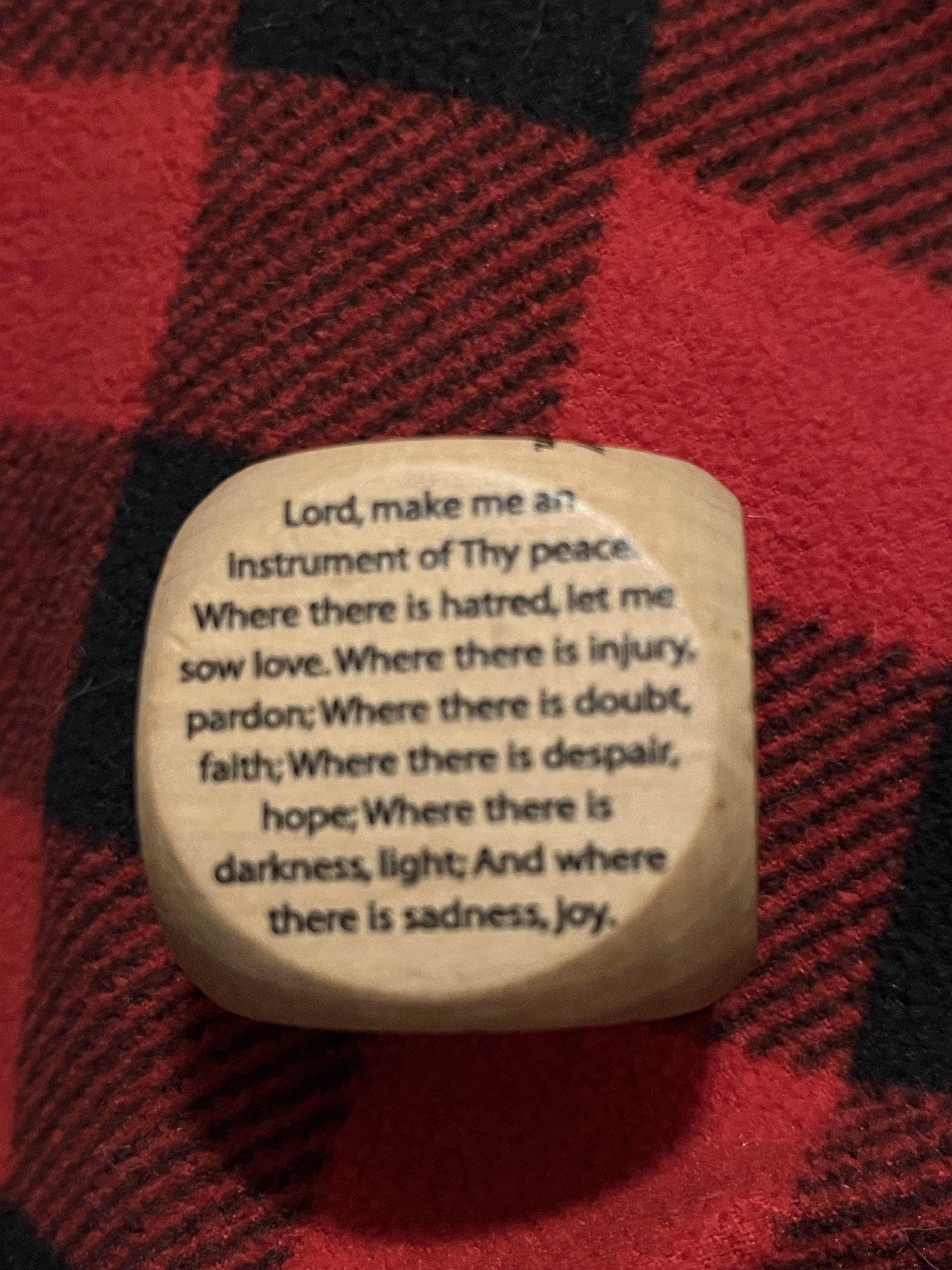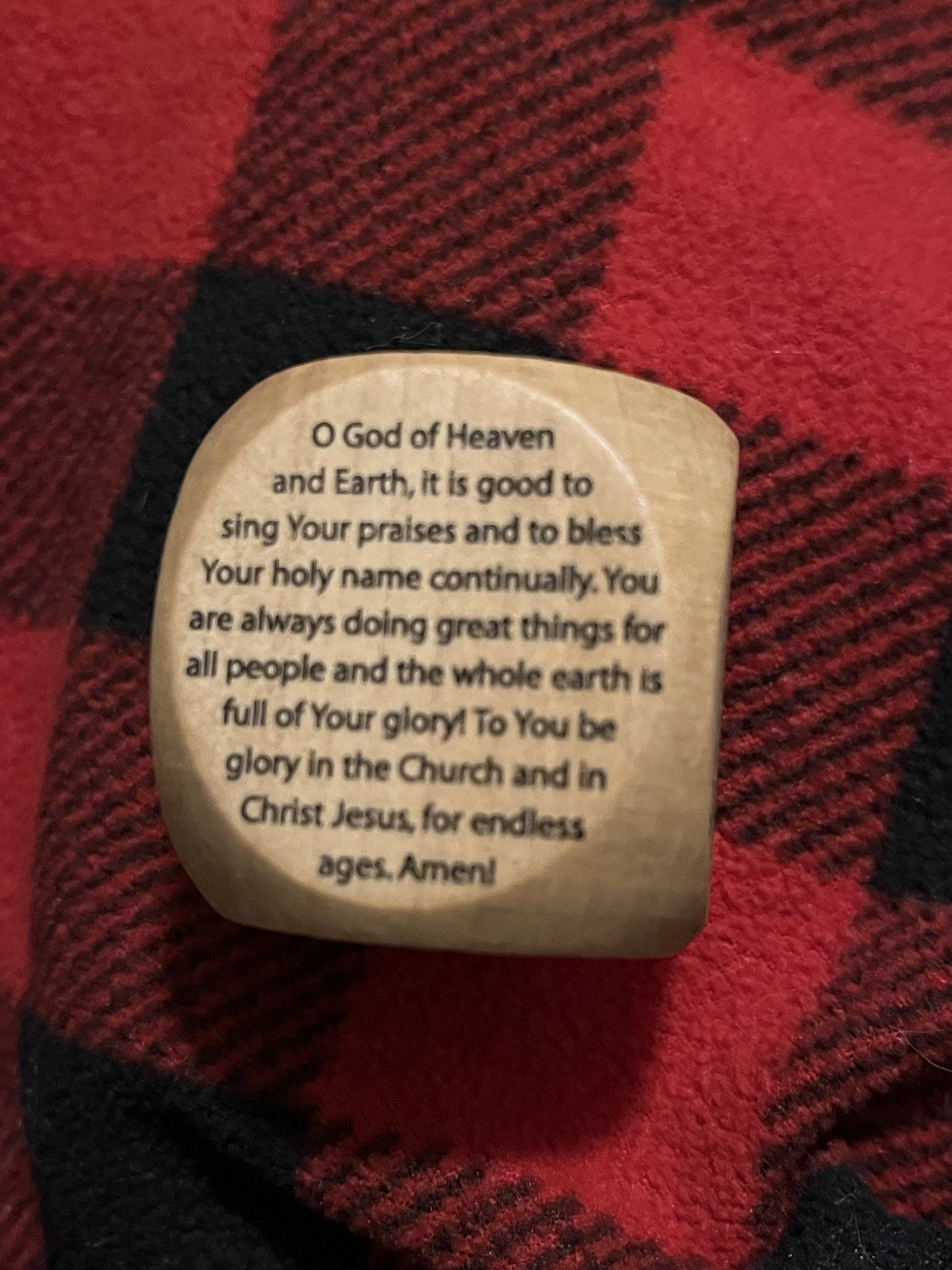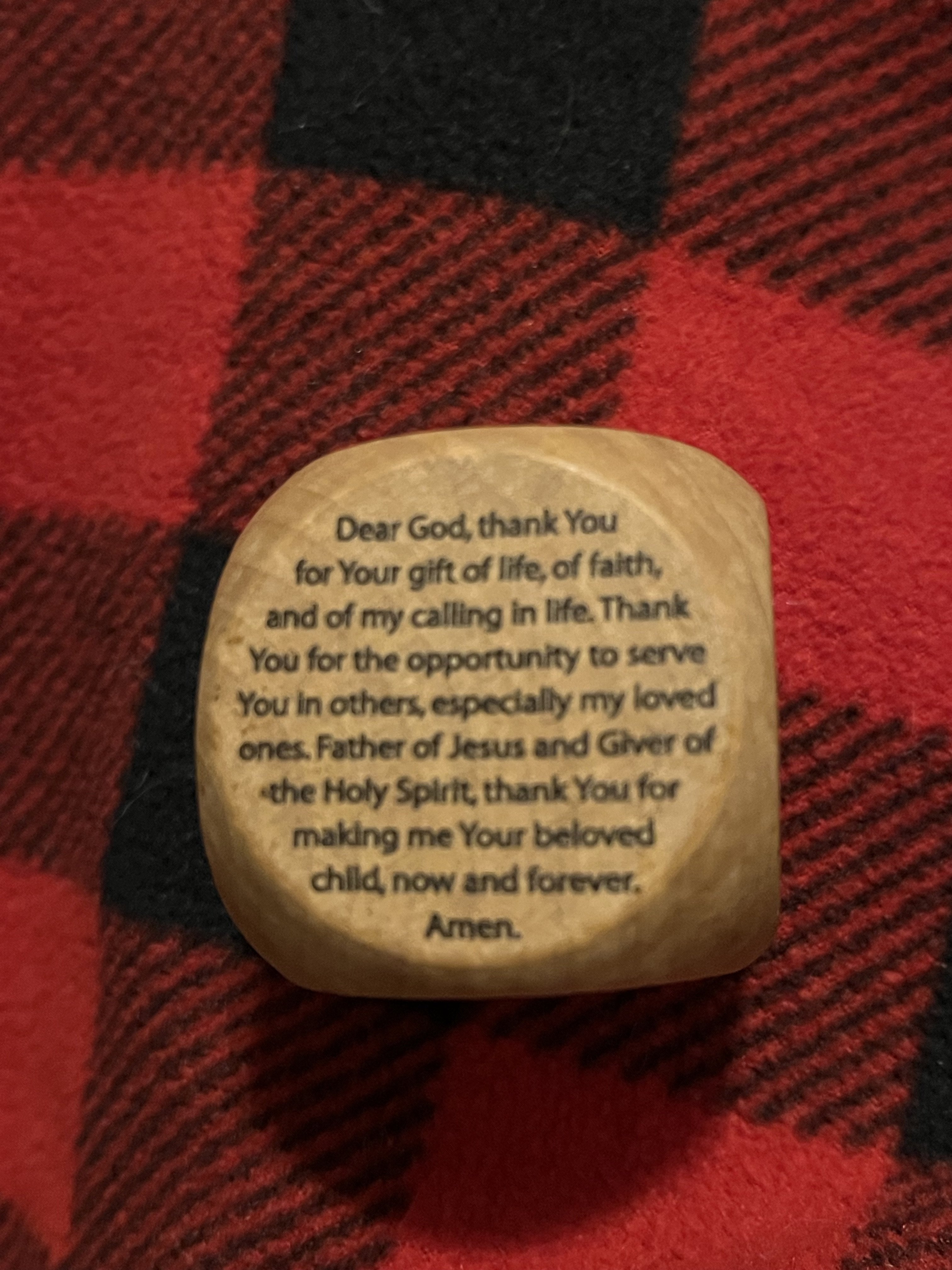 This was a very thoughtful gift from a friend. In my case, these prayers are what I need to see on a regular basis (God’s provision is fantastic) but what prayers would you like to see on a cube like this so you can easily remember them?